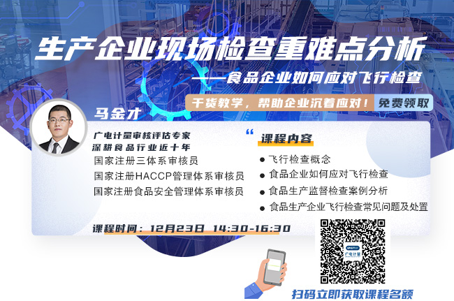 【活动主题】《生产企业现场检查重难点分析——食品企业如何应对飞行检查》